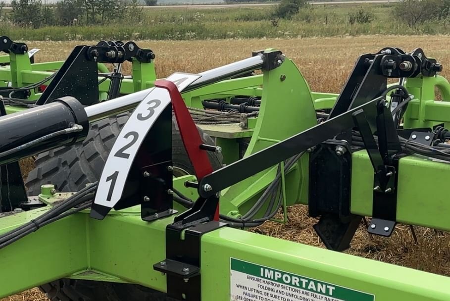 The SHX units always have positive hitch weight in transport position unlike may of the traditional harrows in the marketplace. This is achieved through over centering the frame when lifting the machine into transport position. This over centering also widens the clearances between the centre section and wing for ground following in the transport position.