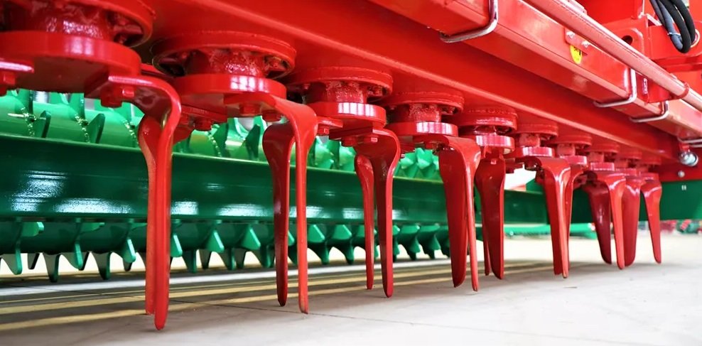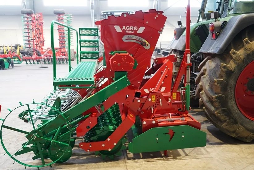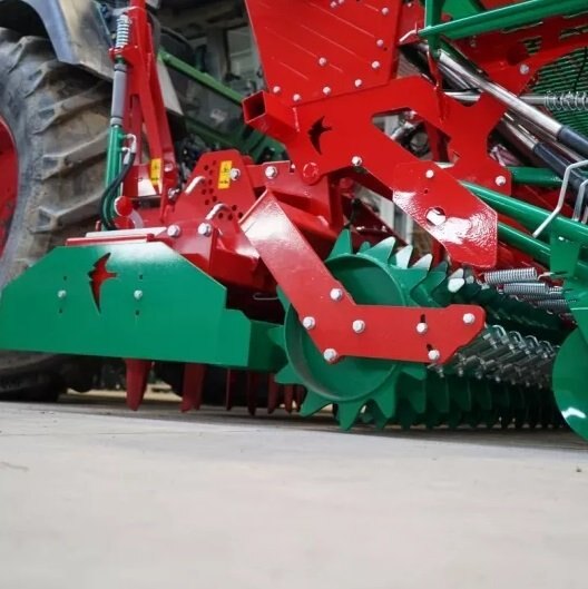 The combination of a top-mounted seed drill with different types of aggregates allows for the perfect selection of a seedbed combination for each type of soil. Choose a set that perfectly fits your farm. You can also use the seeder for sowing catch crops. This compact seedbed combination is characterized by a very good weight distribution. Technologists and designers have devoted a lot of attention to designing a suitably light set, with a compact structure and center of gravity as close as possible to the tractor. The developed structure makes it possible to aggregate the cultivating and sowing set with tractors of relatively low power.