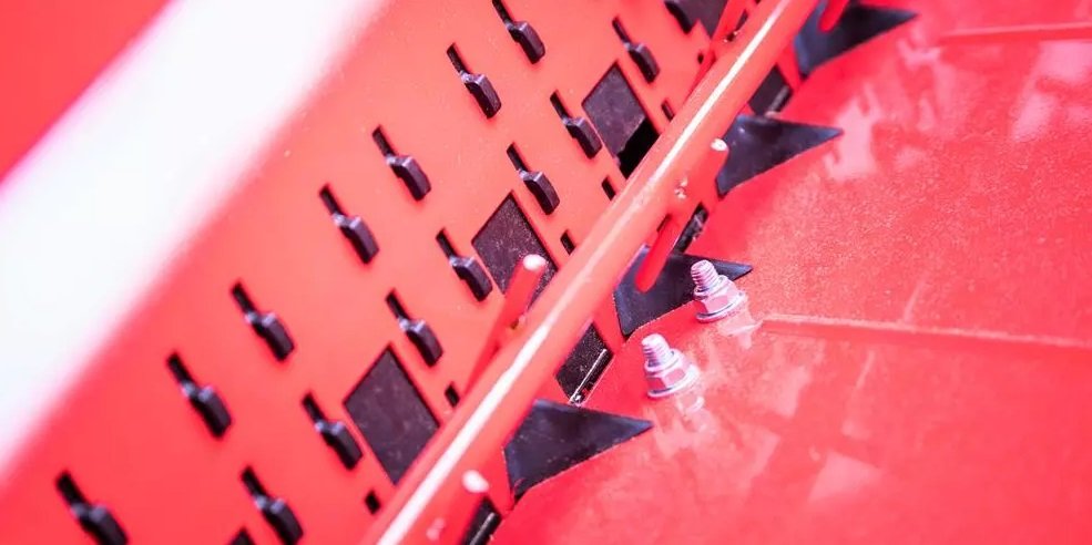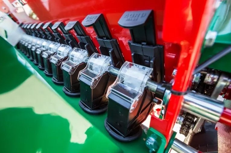 At the bottom of the grain tank, between the gaps supplying grain to the sowing apparatus, grain dividers are mounted. Made of hardened plastic, the elements with a characteristic pyramidal shape are responsible for even distribution of the sown material and protect against spilling of grains with a small amount in the tank. At the same time, when sowing seeds of fine-grained plants, such as rapeseed, they allow sowing the required dose without having to fill the tank with excess grains.