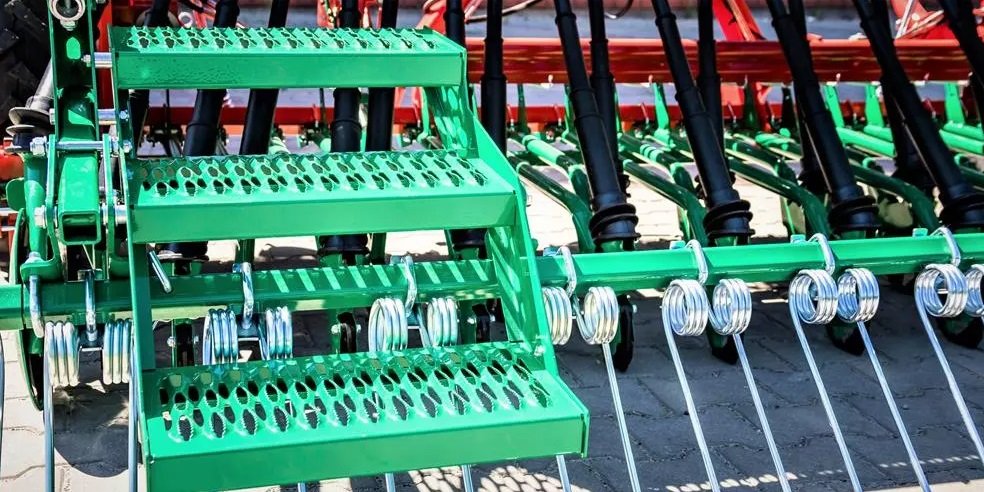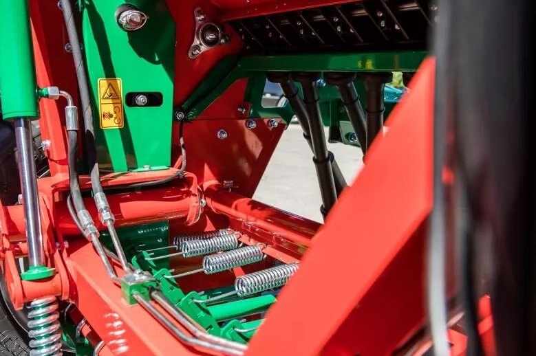 The spring harrow with simple mechanical adjustment of the working angle is adapted to work even with a large amount of straw lying on the field surface. L-shaped spring tines perfectly cover ridges and level the field surface.