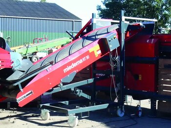 Up to 60 homogeneously filled boxes per hourWith the MB 34, the boxes are partially filled in layers by nodding the filling belt and shifting it in the box. This Dewulf box filler has a capacity of 40-60 boxes per hour. Thanks to the arrester flaps on the nodding section of the filling conveyor, maximum product friendliness is guaranteed. The product sensor at the end determines whether the filling belt should be shifted or nodded. The homogeneous filling of the boxes ensures even ventilation in the box. The last layer is filled with the conveyor nodded. |
