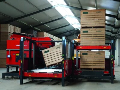 Fully automatic box tippler Automatic tipping of boxes Miedema box tipplers adapt perfectly to your work. You will achieve the desired product...