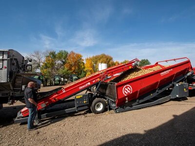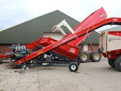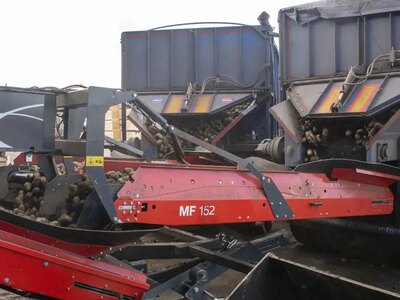 Receiving hopper filler for belt trailer Care for potato quality and capacity, from belt trailer to receiving hopper With an MF 15x receiving...