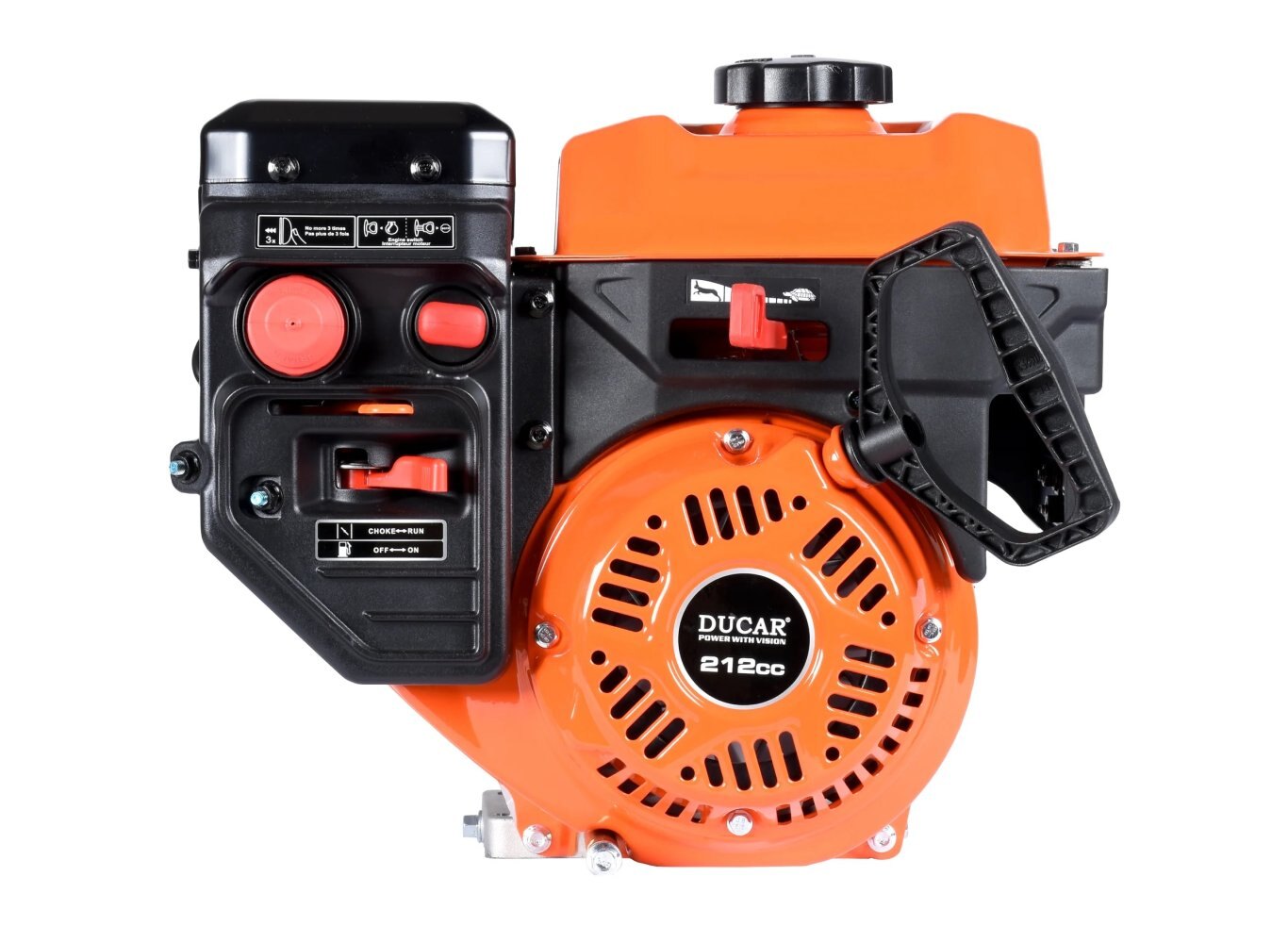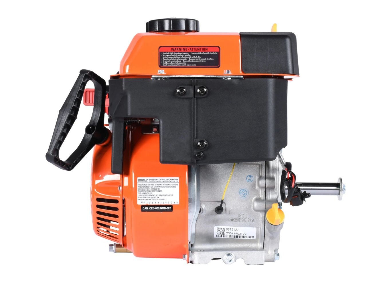 Engine : 4-Stroke OHV Air Cooled Single Cylinder - 212CC Power : 7 HP Crankshaft type : Key way / Q type Crankshaft diameter : 19.05 mm (3/4in) Fuel tank capacity : 3,4 l Oil tank capacity : 0.55 l Oil alert : Yes Bore / Stroke : 75 mm x 48 mm Compression ratio : 8.8:1 Max RPM : 3600 Starting system : Recoil Note : Engine oil not included |