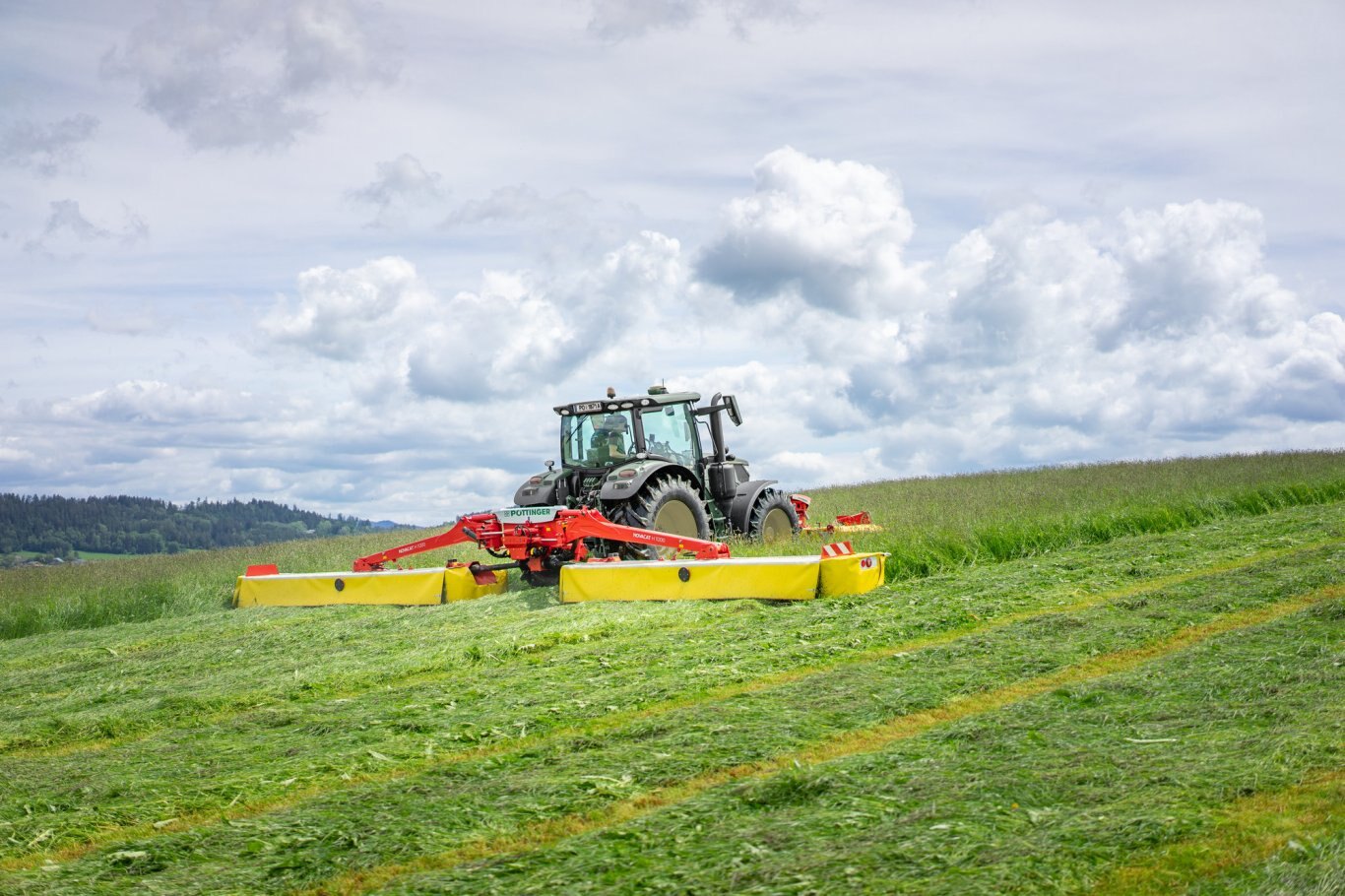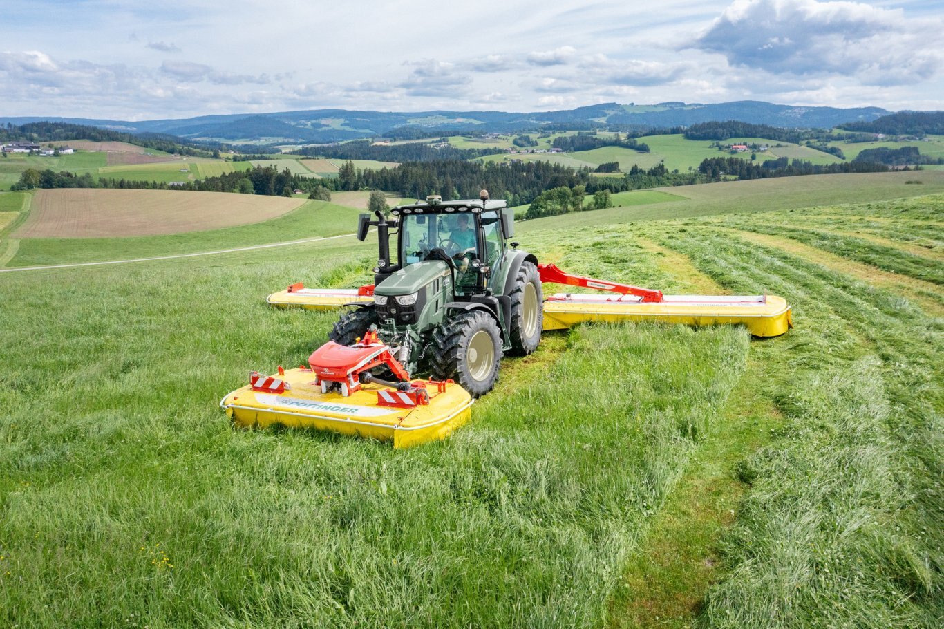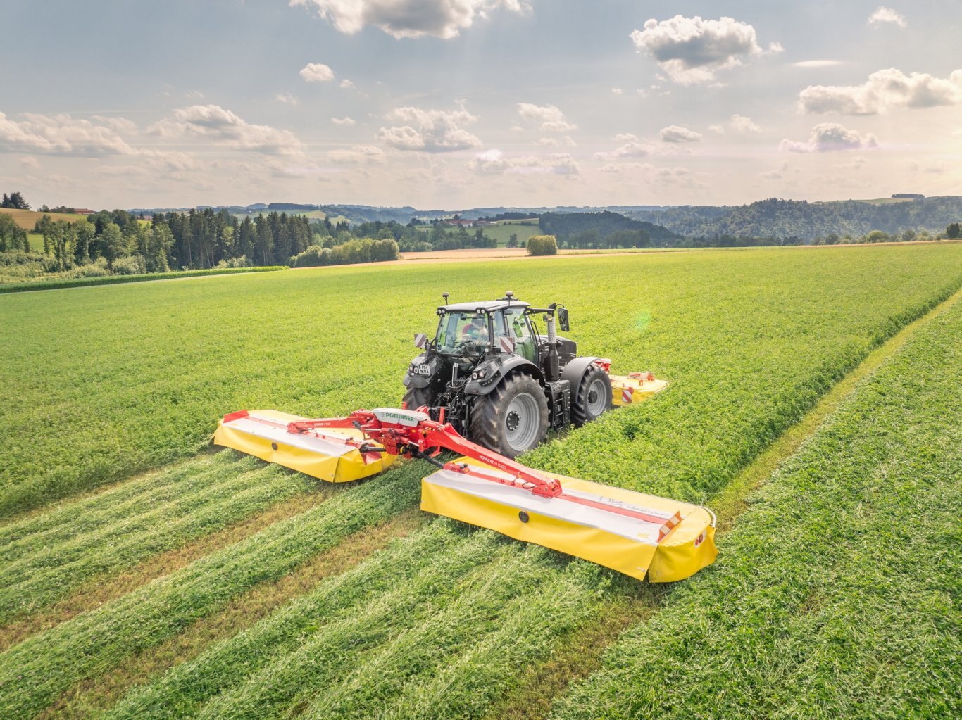 With the NOVACAT H mower combinations, PÖTTINGER sets new standards in terms of high output and efficiency. The NOVACAT H 11200 is the largest mounted mower combination available on the market. It gives you a full working width of 11.14 m for the lowest fuel consumption. The NOVACAT H 9500 achieves a maximum working width of 9.46 m.