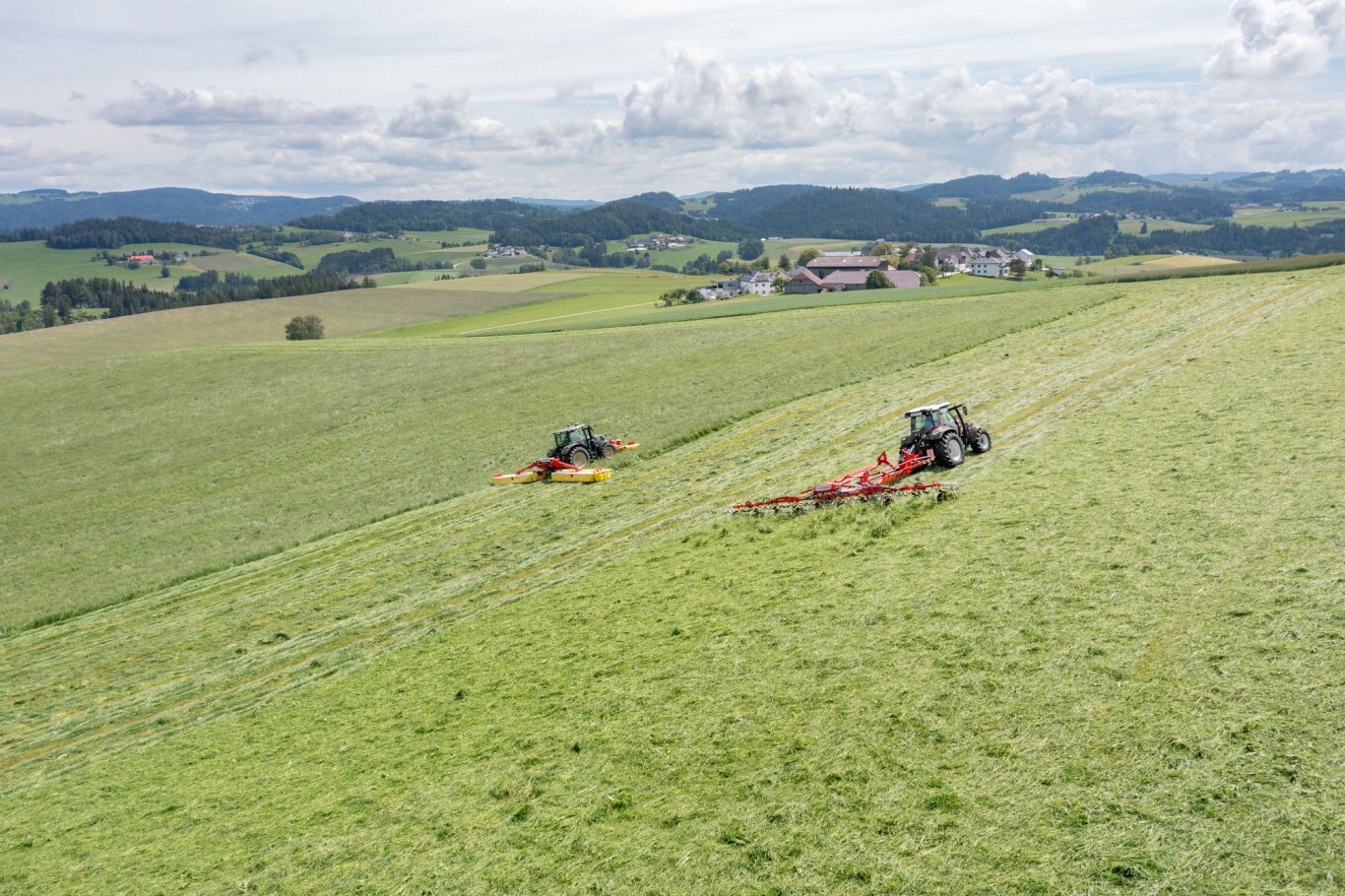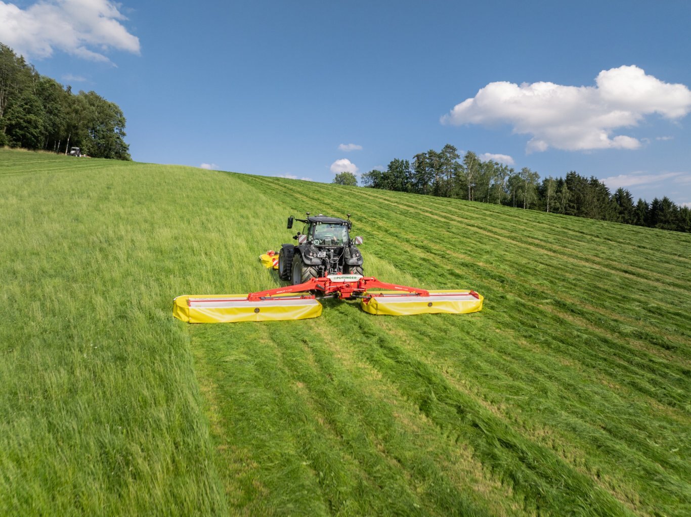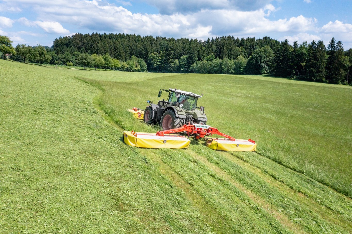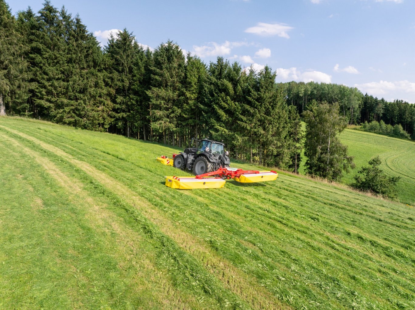 With the NOVACAT H mower combinations, PÖTTINGER sets new standards in terms of high output and efficiency. The NOVACAT H 11200 is the largest mounted mower combination available on the market. It gives you a full working width of 11.14 m for the lowest fuel consumption. The NOVACAT H 9500 achieves a maximum working width of 9.46 m.