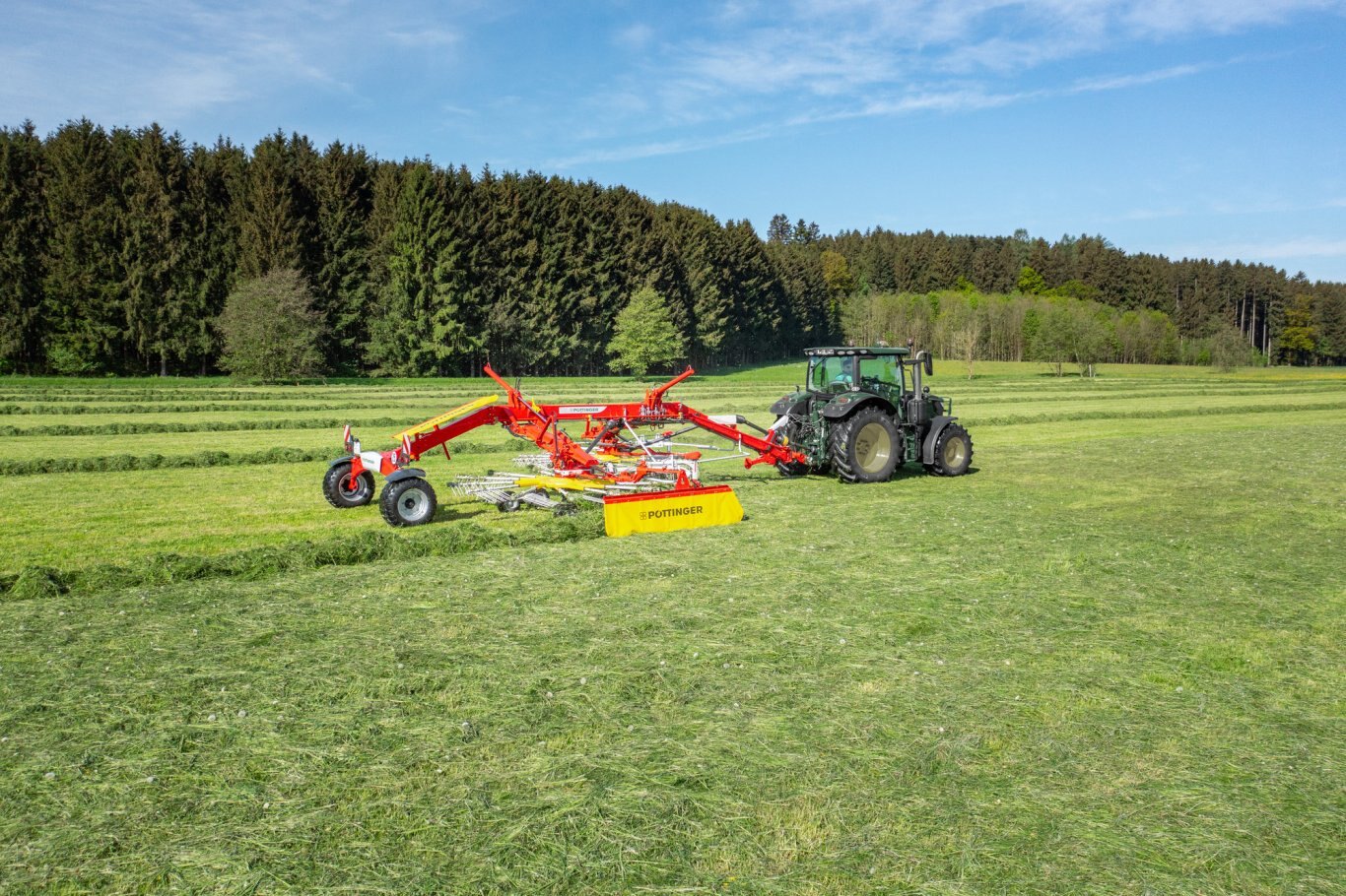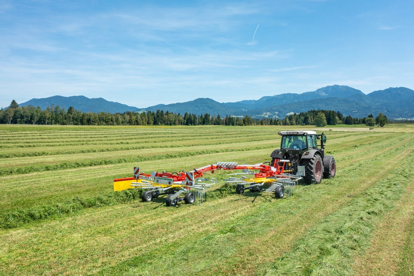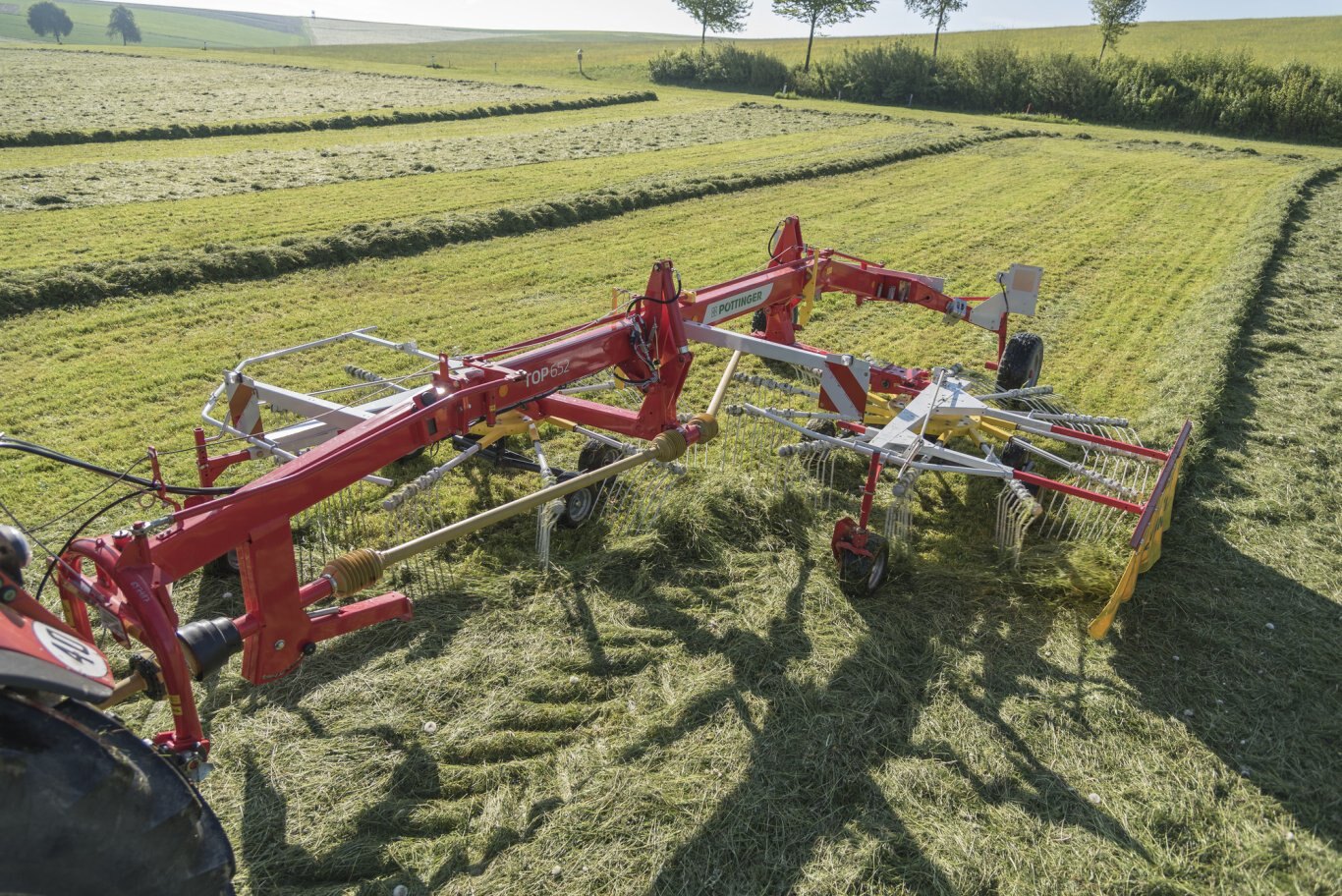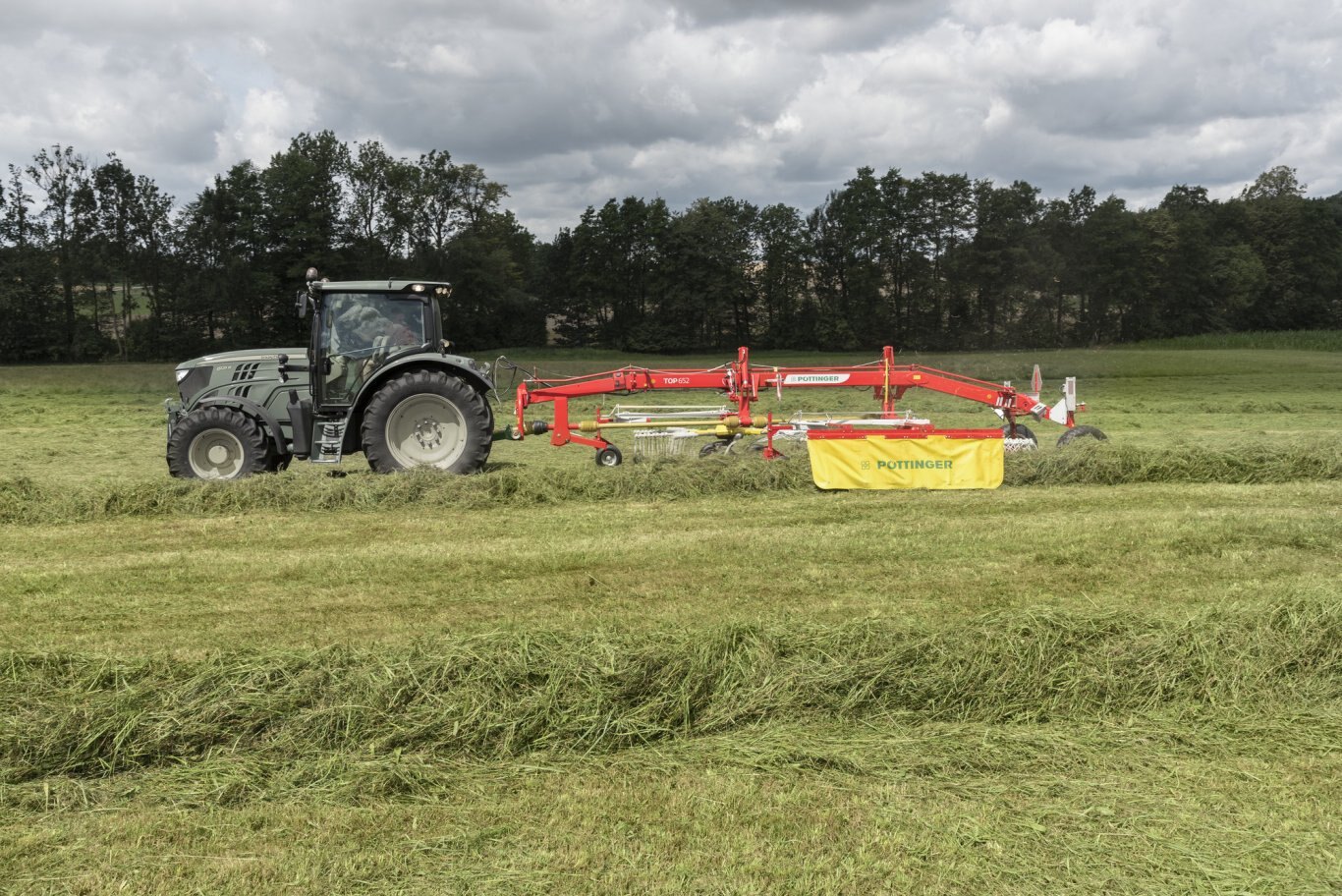 With TOP A side rakes you benefit from the highest flexibility. On our rotary rakes, a wide range of working widths is possible thanks to the ingenious steering system on the rear rotor.