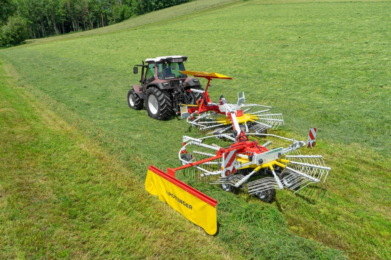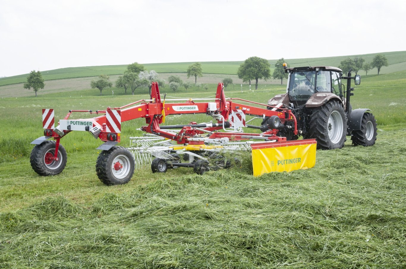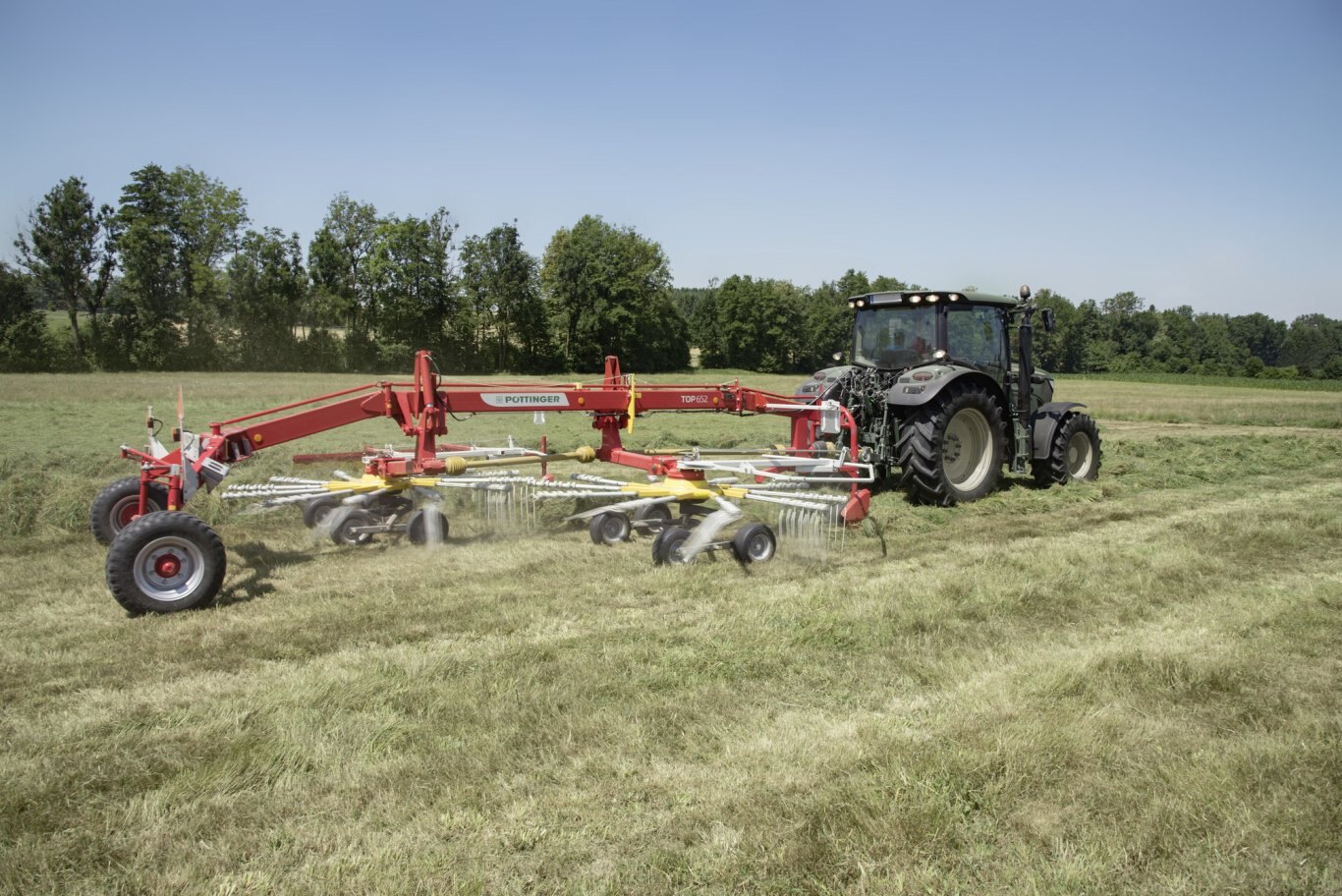 With TOP A side rakes you benefit from the highest flexibility. On our rotary rakes, a wide range of working widths is possible thanks to the ingenious steering system on the rear rotor.