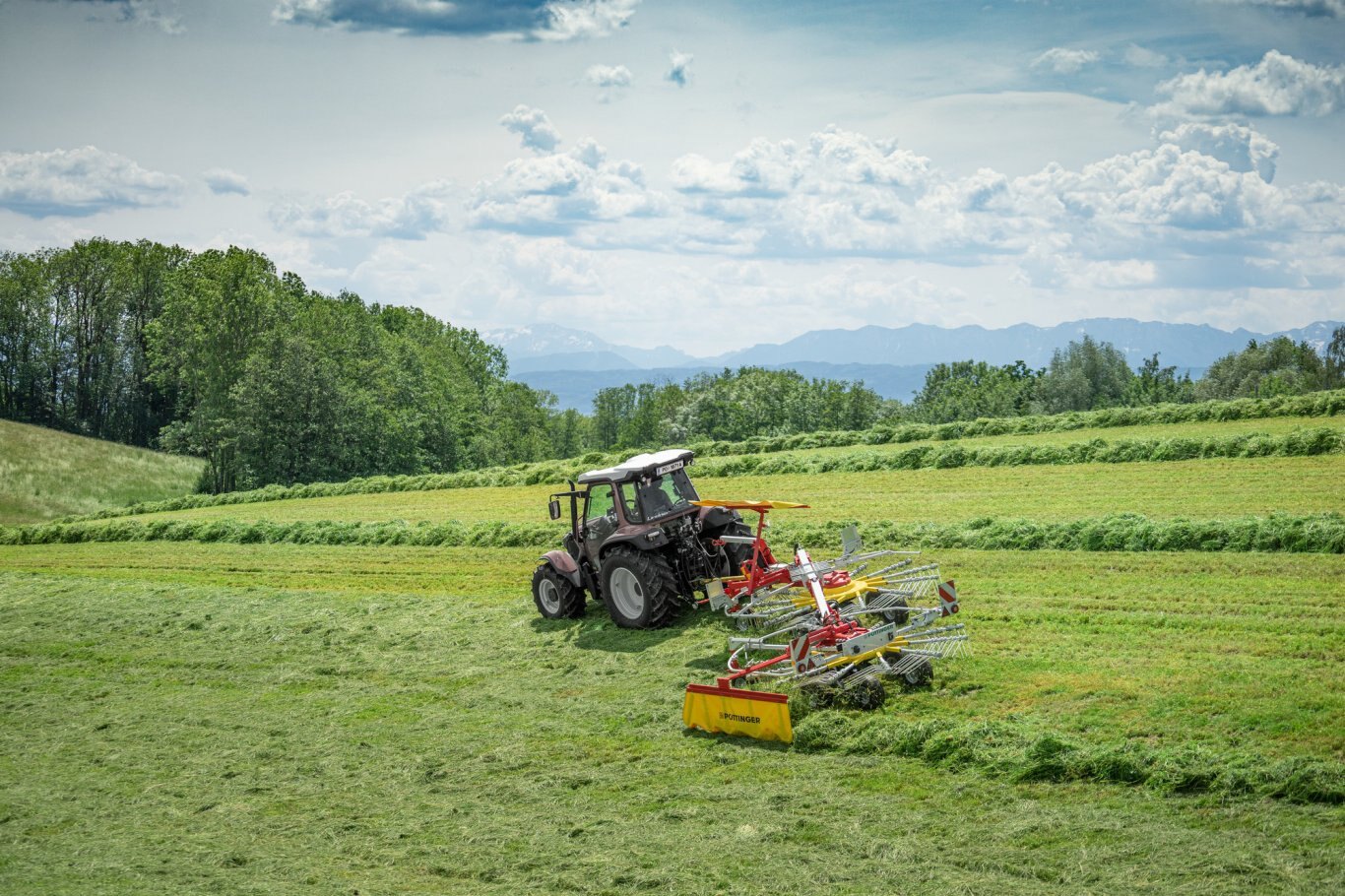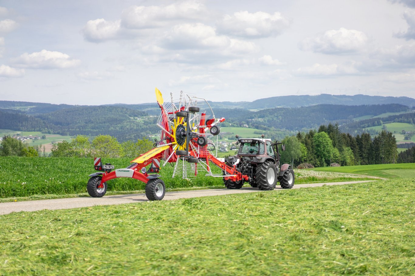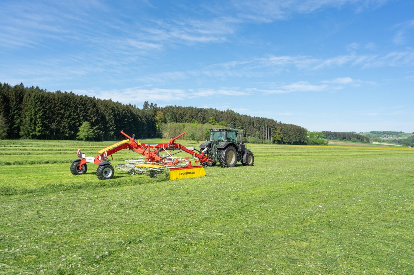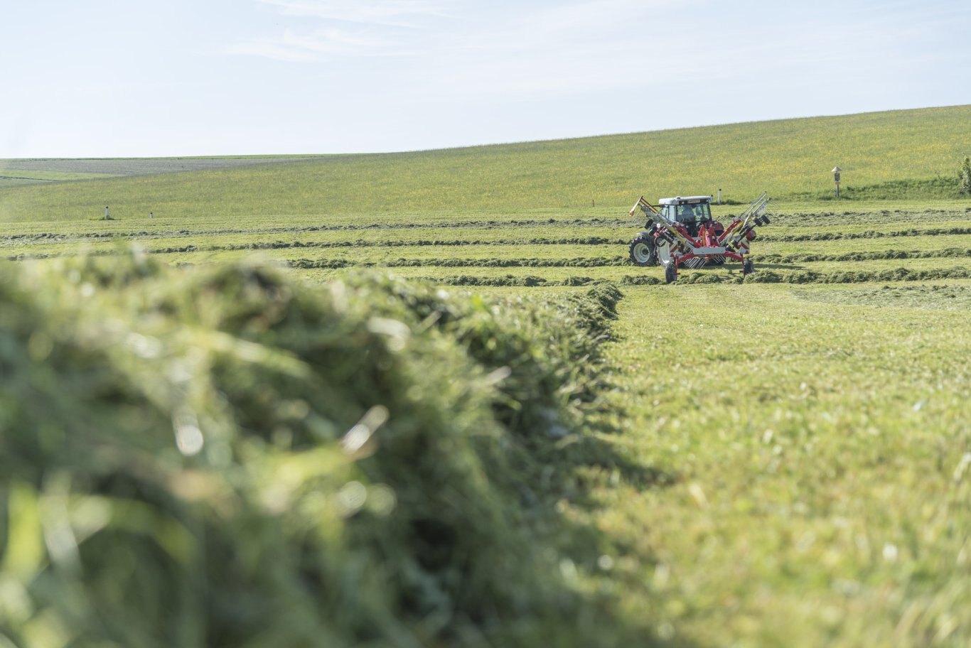 With TOP A side rakes you benefit from the highest flexibility. On our rotary rakes, a wide range of working widths is possible thanks to the ingenious steering system on the rear rotor.