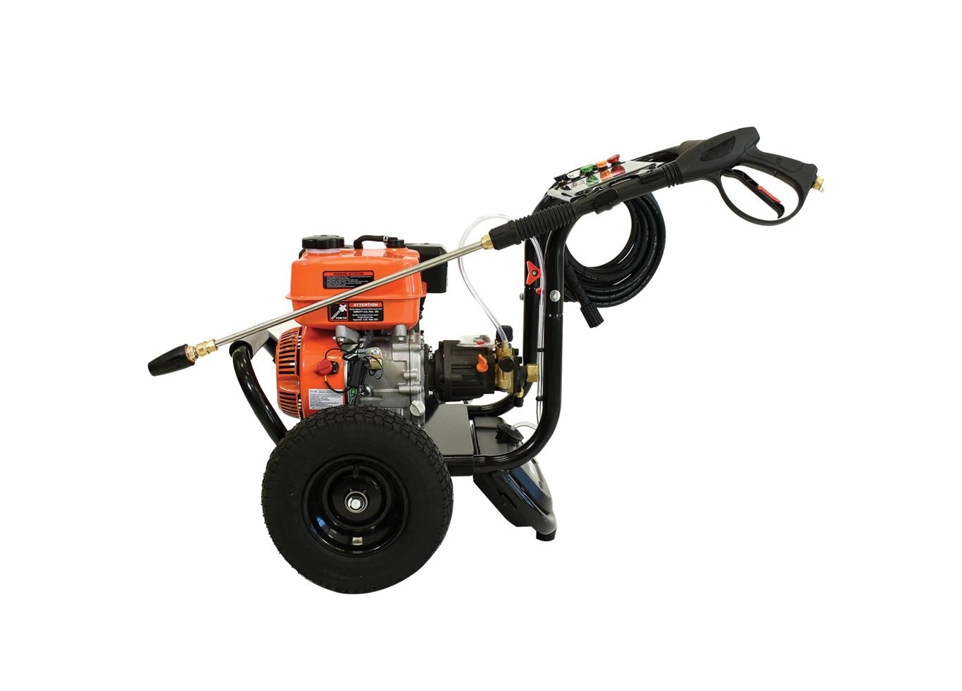 Engine : 4-stroke OHV Air Cooled Single Cylinder - 212CC (7 HP) Starting system : Recoil Pressure : 3200 PSI Hose length : 9.14 m Flow : 9.45 Liter/min. Nozzles : 5 Note : Engine oil not included |