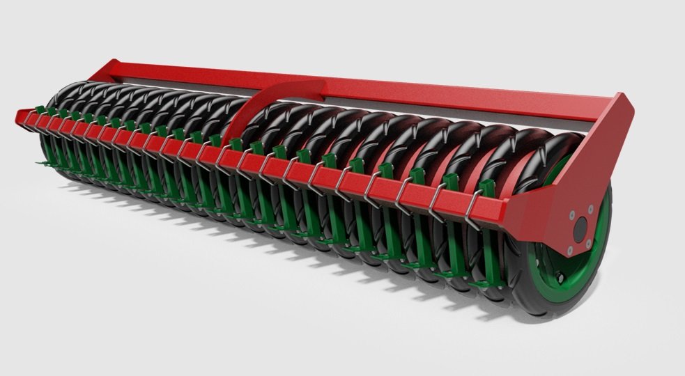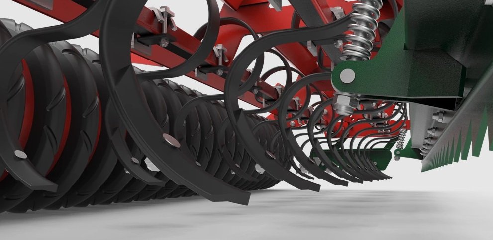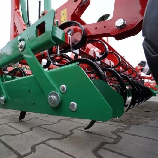 Spring steel teeth arranged in two sections ensure maximum crumbling of clods of earth. They end with coulters with a double-sided blade, which automatically extends their service life. Thanks to the appropriate combination of distances between successive beams and the ground clearance, they ensure excellent work results.