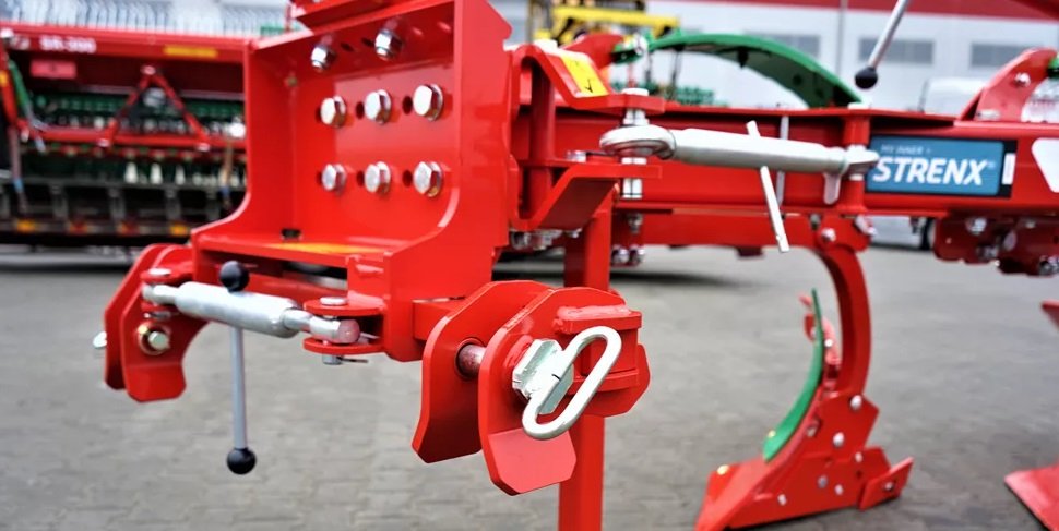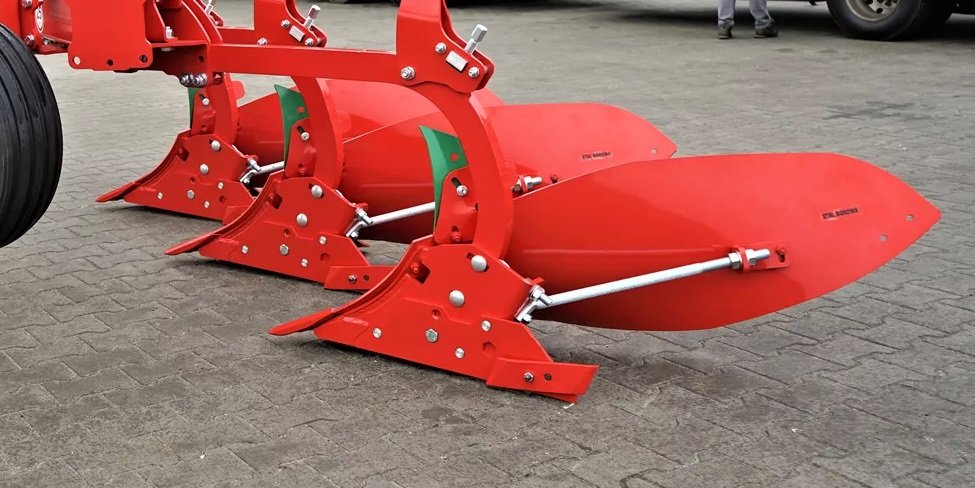 The ploughing performance and tractor combustion level depend to a large extent on the working width of the plough. The ploughing width in our ploughs can be changed in a simple manner, by shifting the position of adjusting bolt which determines the work width of every furrow-slice. The working width of the plough can be adjusted to the tractor power and type without unnecessary efforts. The four-stage scale of the gradual work width adjustment of every body within 35, 40, 45, 50 cm gives huge opportunities. The width reduction can be forced by changing soil conditions. The width can be also increased to the maximum when shallow ploughing is required. The tractor power and parameters can be fully used in very changing conditions as well.