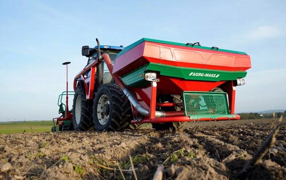 The front hopper is a universal tool for sowing seeds and fertilizer. It is mounted on the front of the tractor, so it also acts as a weight. Thanks to this solution, we achieve better weight distribution on the front and rear tractor axles, thanks to which the maneuvering of the set becomes easier, the soil is compacted to a lesser extent, and the demand for tractor power is reduced.
