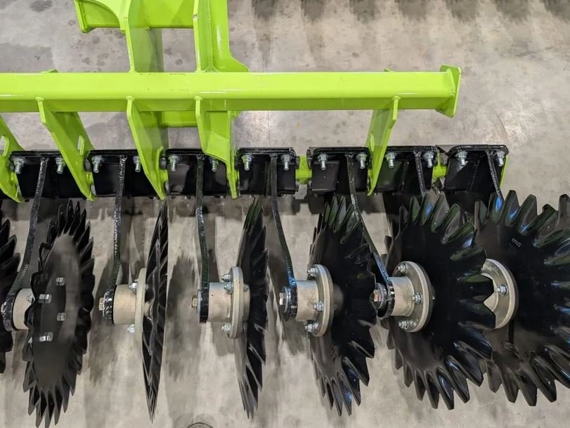 The concave discs are mounted to a four bolt service free hub and a specially designed shank. The rubber torsion shank has been designed for long life and ground following.